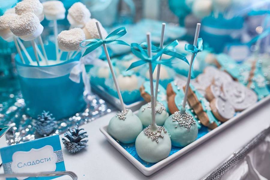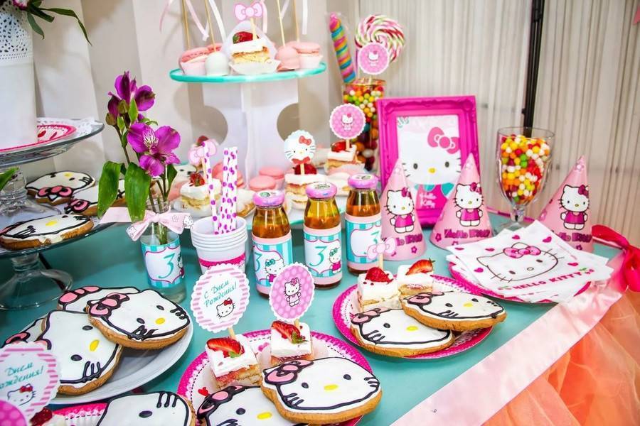 основной акцент ставится на фруктах и десертах – печенье, конфетах, пирожных и мороженом, кок обязательном атрибуте любого детского праздника;