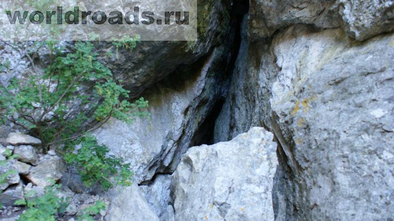 Дальше – спуск в расщелину по скальным выступам, фактически по каменным ступеням. Как будто природе было жалко не показать свои красоты людям, и она предусмотрела удобный спуск.