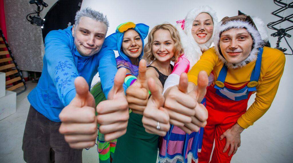 Ребята должны быть “на одной волне” с переодетым ведущим. Некоторые агентства обеспечивают юных участников элементами костюмов, наносят аквагрим для создания целостного образа (об этих услугах нужно заранее узнать и включить их в договор, если это необходимо).