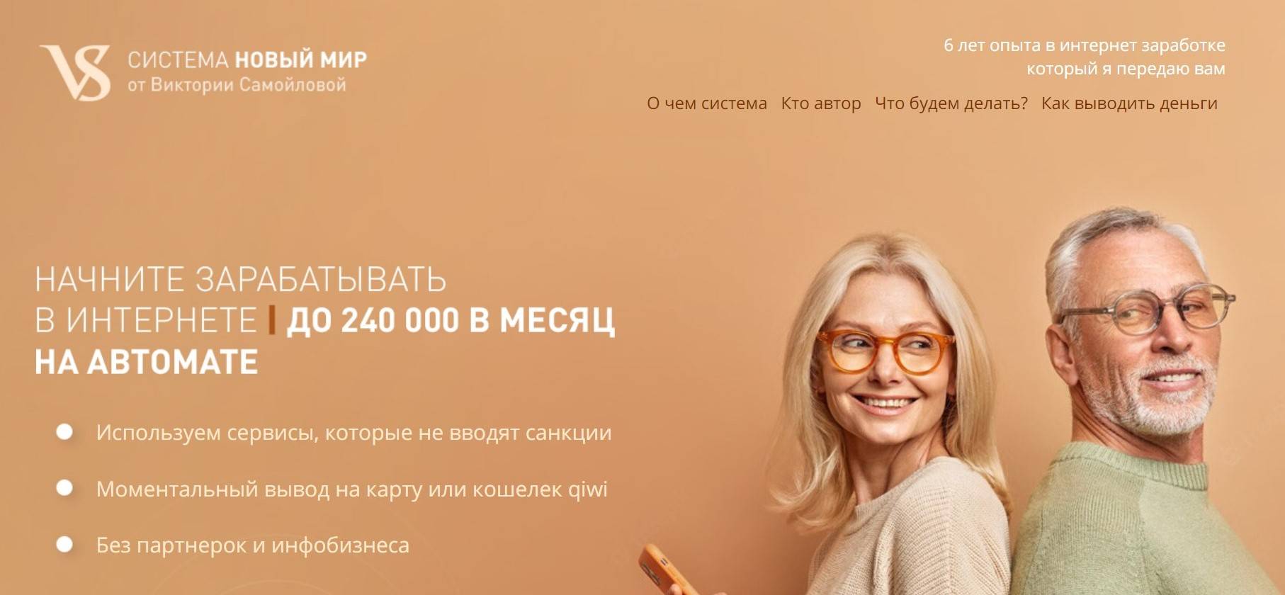Виктория Самойлова предлагает революционно новую идею заработка без партнёрок и инфобизнеса. И обещания её, конечно, безоблачны.