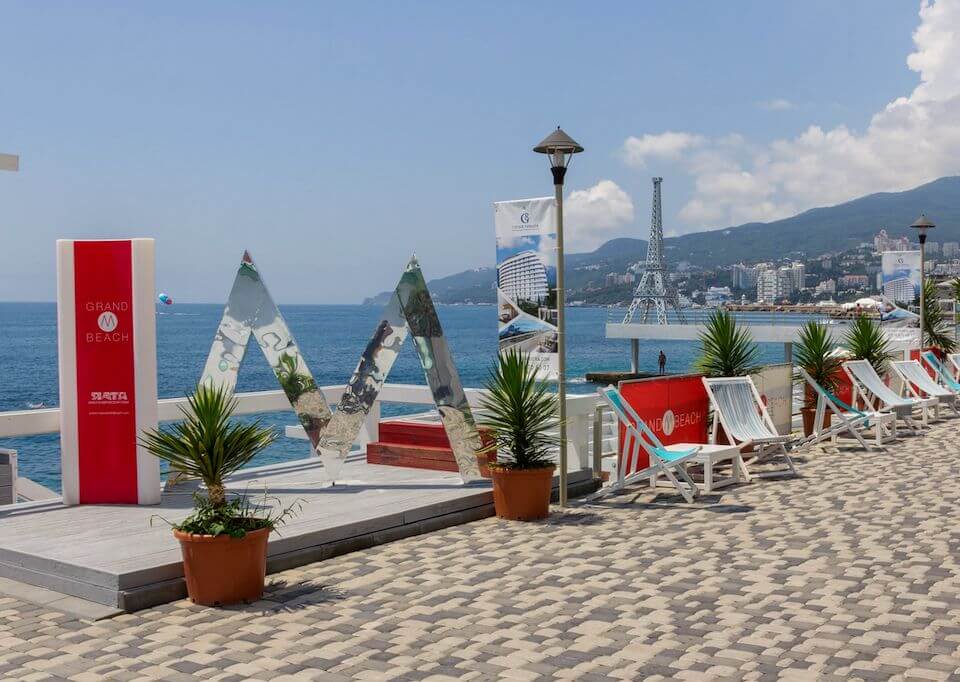 Повышенной комфортностью выделяется территория пляжного клуба Grand M Beach с возможностью отдыха на открытых и закрытых крышей террасах, наличием бассейна с водой из горных источников. С наступлением вечера клуб превращается в пляжное кафе с выступлением ди-джеев, танцами и развлекательными программами.