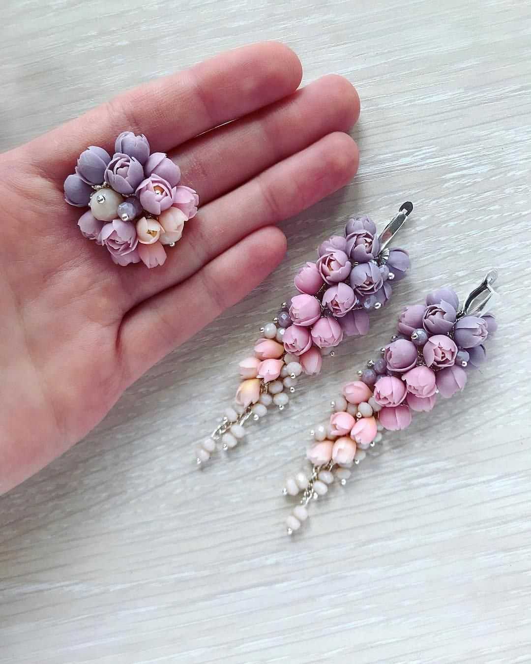 Цветочные серьги из полимерной глины готовы, можно надевать и любоваться получившимся результатом.