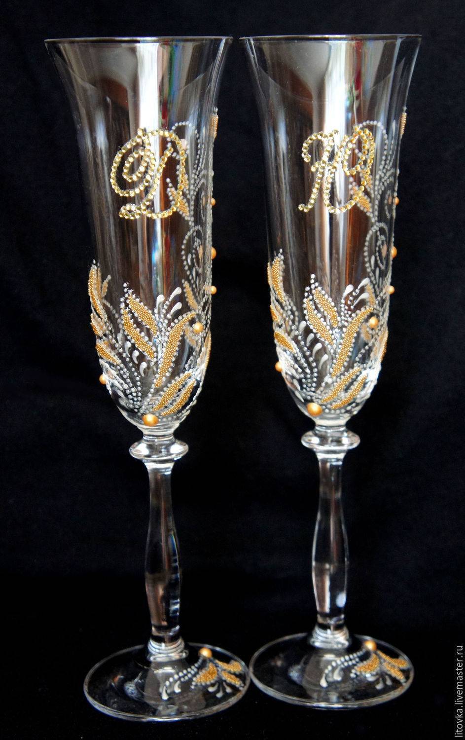 Такие изделия ручной работы понравятся всем гостям и будут еще долго храниться в доме семьи. Главное выбрать наиболее подходящий и доступный способ для украшения. При наличии времени украсить можно бокалы и для гостей