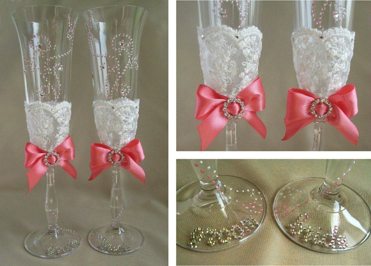 Существует масса идей для украшения бокалов на свадьбу, которые позволят вам создать своими руками уникальные аксессуары. Вот несколько вариантов: