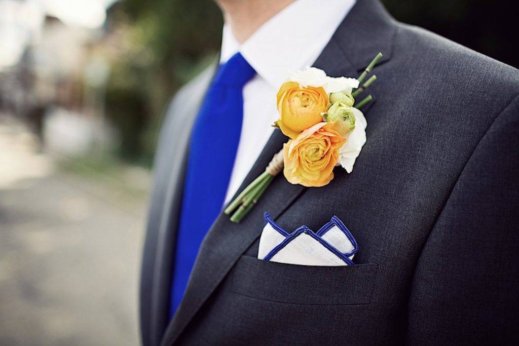 Количество бутонов и их оформление пара должна выбрать совместно, главное чтобы они надежно крепились к лацкану пиджака.