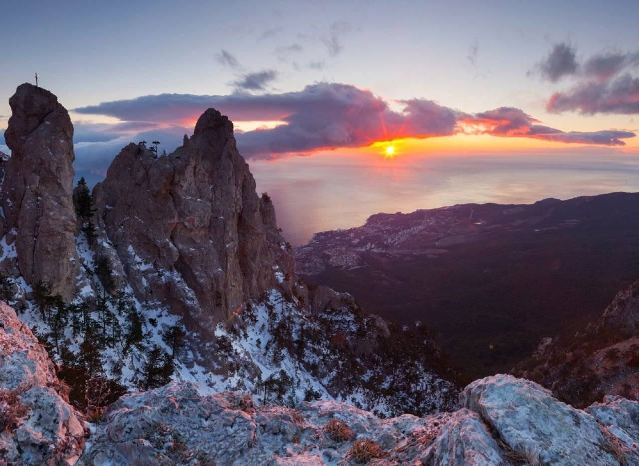 На большей части территории Крыма зимой держится плюсовая температура, минус характерен разве что для гористых районов. К примеру, на Ай-Петри снежный покров сохраняется почти три месяца. А зима на южном побережье достаточно мягкая — температура достигает +15°C, но в среднем +6−8°C.