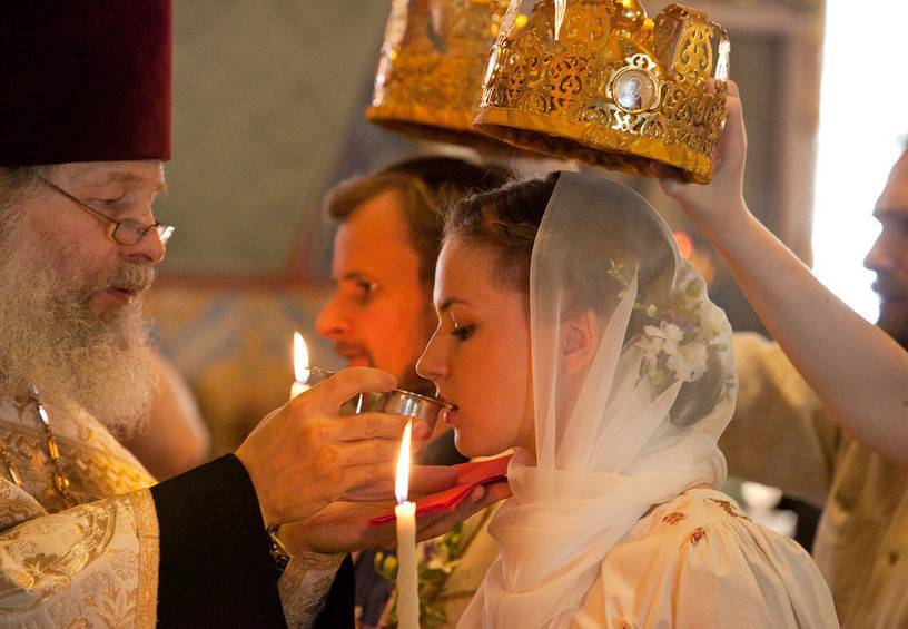 Утром молодожены приходят на богослужение. Причащение начинается после чтения молитвы «Отче наш». Нужно дождаться закрытия Царских врат, затем, вместе со всеми прихожанами, желающими причаститься, подойти к алтарю.