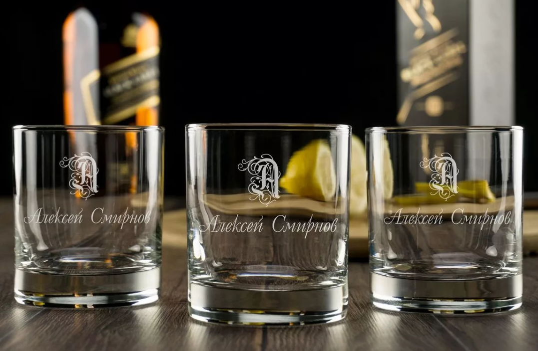- Комплект бокалов под виски или вино, дополненный именной гравировкой.
