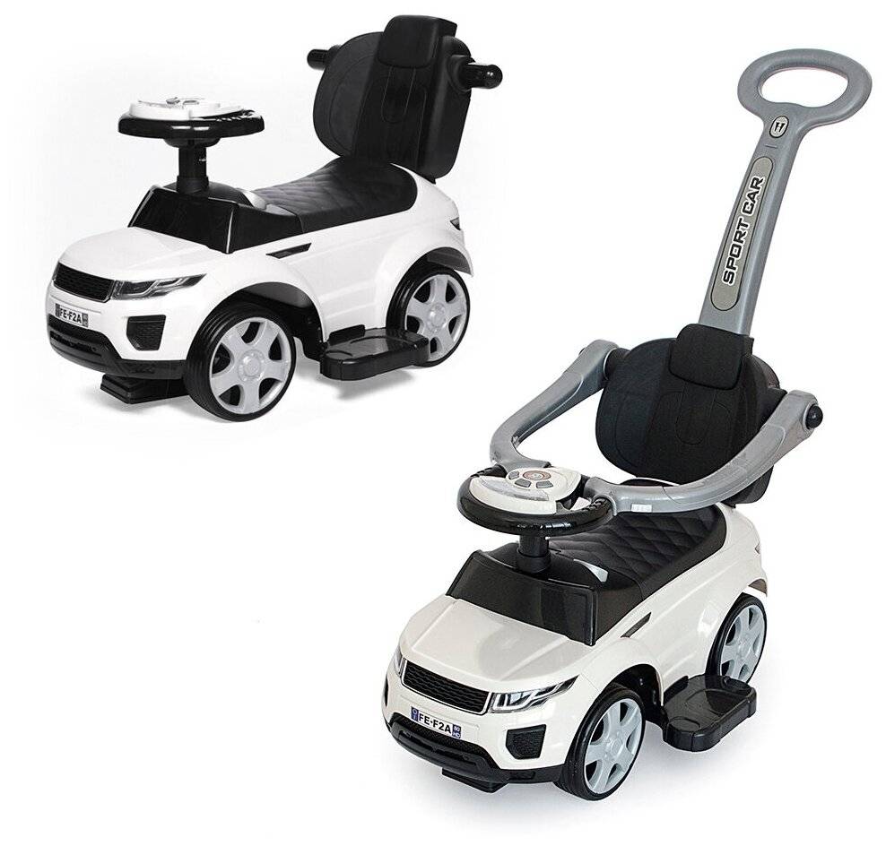 - Машинка – толокар, предназначенная для самостоятельного перемещения малыша. Первый способ — сидя на ней, ребенок перебирает и отталкивается ногами. Второй — просто идет за ней и толкает (отсюда и название). Игрушка очень нравится малышам и помогает неуверенно ходящим детям. Модели для девочек и мальчиков обычно отличаются цветом и наклейками.