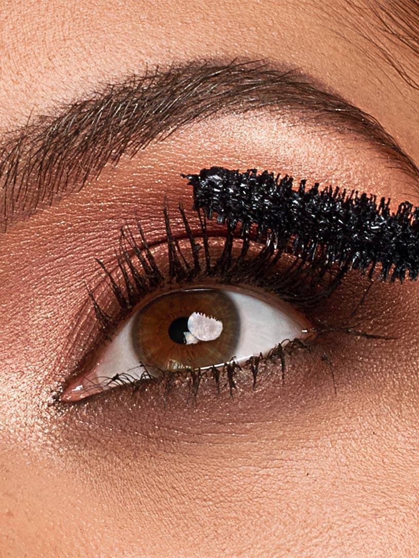Следом обильно прокрашиваются ресницы, особенно верхние, можно сделать несколько слоев, рекомендуется предварительно использовать базу под тушь.