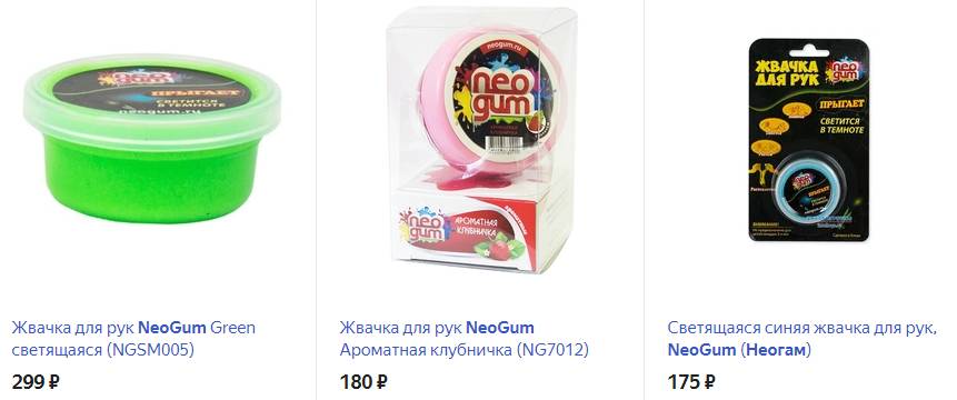 Неогам. Это такой эластичный антистресс, или «жвачка для рук». Они бывают разных цветов, но всегда с красивым, перламутровым оттенком. В составе — силиконовые масло и стружка, ничего вредного для здоровья. Стоимость около 200 рублей.