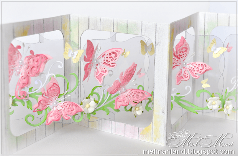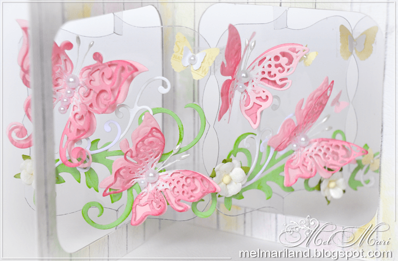Украшайте не только «стенку» диорамы, но и каждый кадр. Используйте побольше объемных украшений, таких как, бусинки, бантики, перья, ленточки и пр. Так открытка будет казаться более объемной и это усилит 3D-эффект!