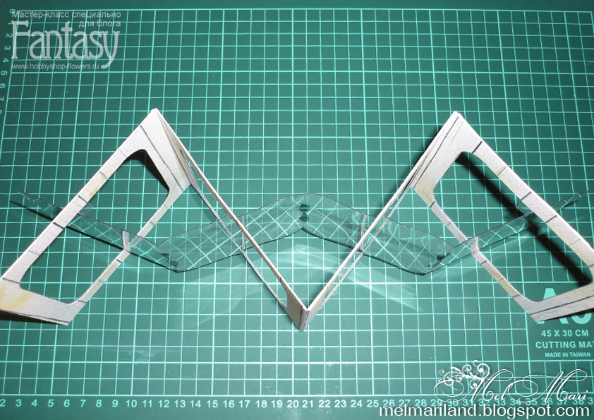 Далее соединяем внутренние пластиковые детали. Проще всего для этого использовать прозрачный скотч. Получаем такую основу для открытки-аккордеона.