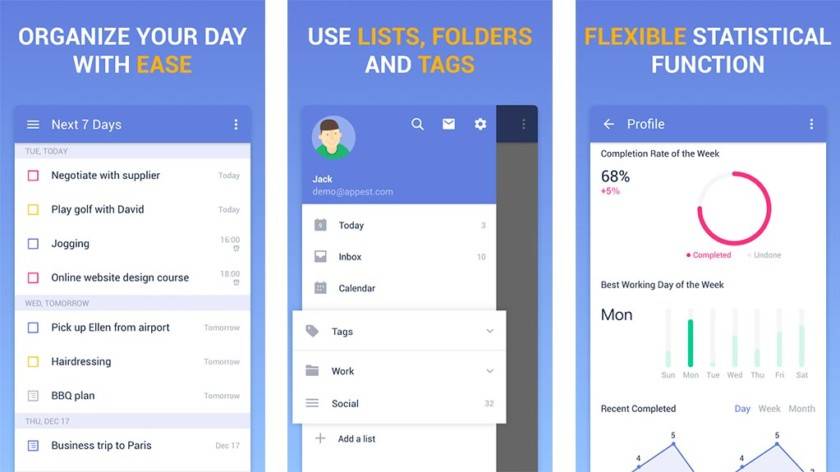В программе встроены три темы оформления, множество настроек для сортировки списков и других приятных мелочей.