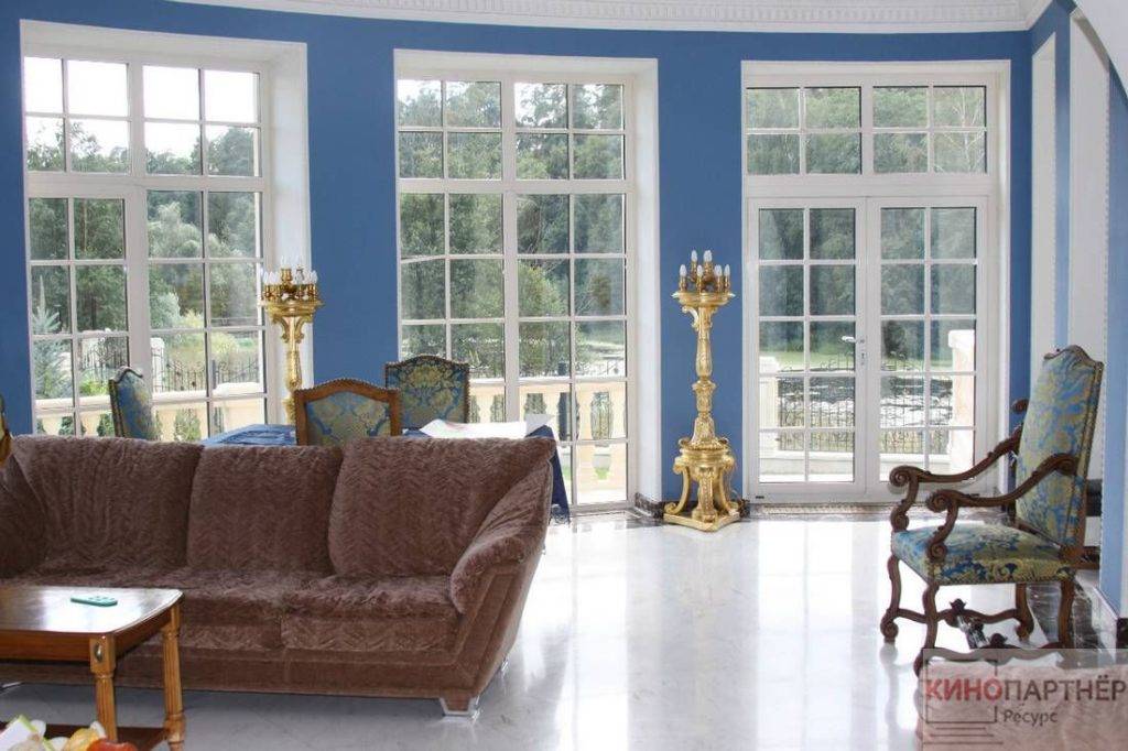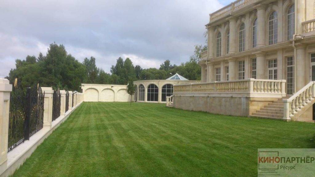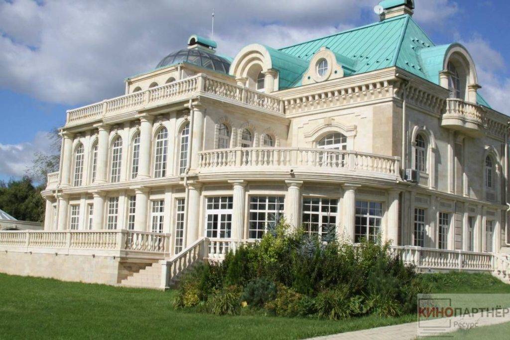 Трехэтажный дворец в классическом стиле. Расположен в 7 км. от Москвы по Новой Риге. Обстановка внутри дома подходит для съемок исторических фильмов или сказок: есть дворцовые лестницы с красивыми перилами, множество картин и уникальной росписи. Помимо самого дворца, предоставляется в пользование огромная парковая территория вокруг него.