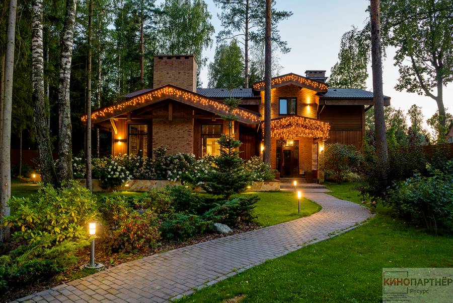 Современный дом дизайнера. Находится в 32 км. от Москвы по Минскому шоссе. Элитный коттедж в стиле Хай-тек площадью 350 кв. м. К нему прилагаются гостевой дом и 25 соток земли. Внутренняя отделка идеальна: нет ничего лишнего, каждый элемент выверен и полностью соответствует занимаемому месту. Вечером и ночью площадка вокруг дома наполняется мягким сиянием подсветки.