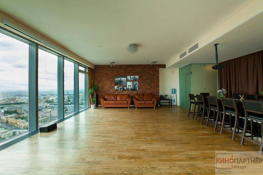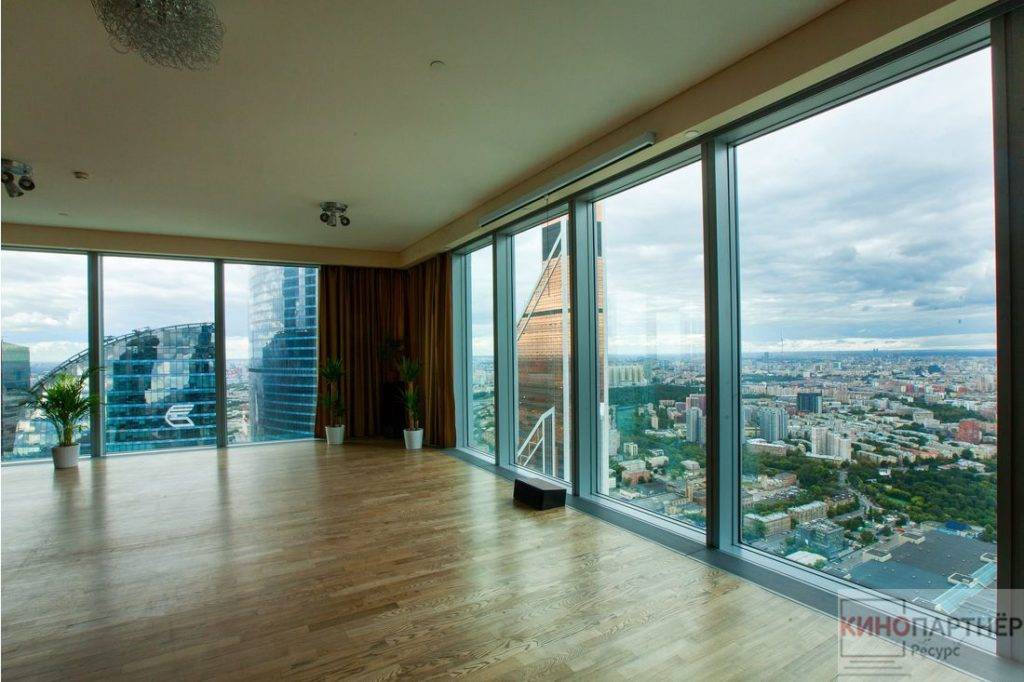 Очень популярные у съемочных групп апартаменты. Расположены в Пресненском районе, в самом сердце Москвы. Элитная студия площадью 100 кв. м. располагается на 60-м этаже. Панорамные окна, захватывающие виды, дорогая мебель – здесь снимались клипы, реклама и сюжеты кино.