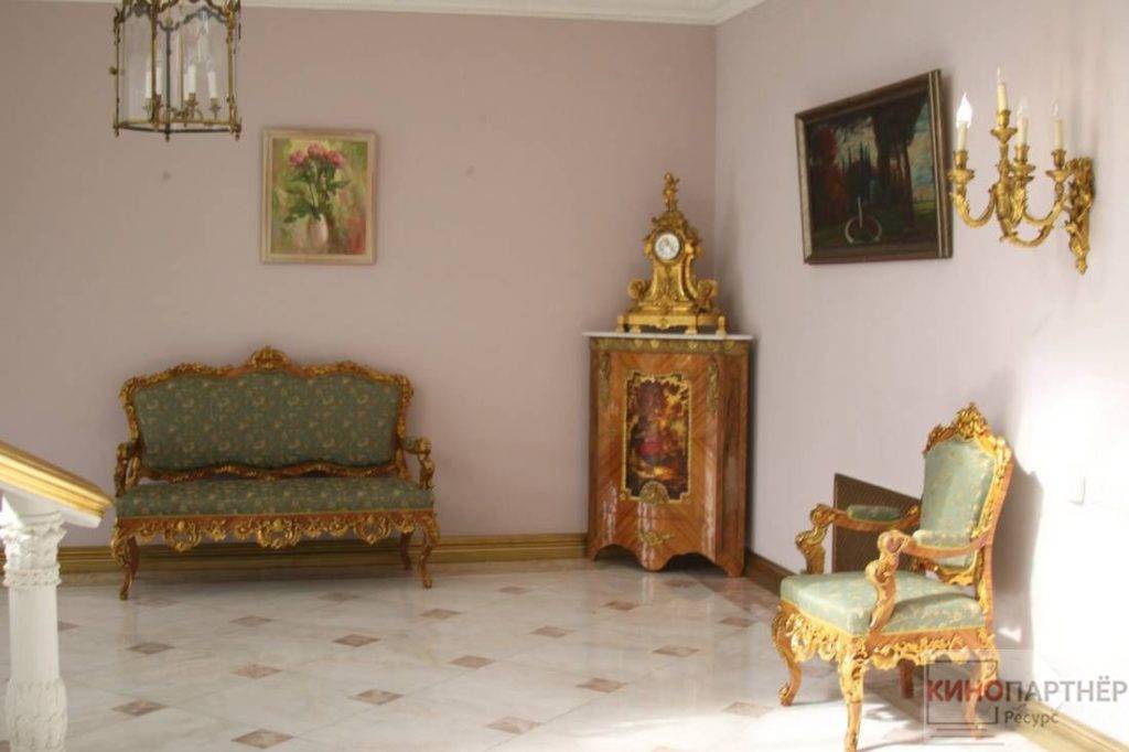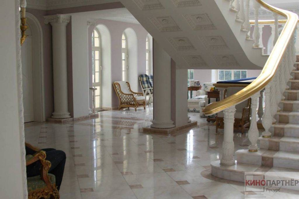 Трехэтажный дворец в классическом стиле. Расположен в 7 км. от Москвы по Новой Риге. Обстановка внутри дома подходит для съемок исторических фильмов или сказок: есть дворцовые лестницы с красивыми перилами, множество картин и уникальной росписи. Помимо самого дворца, предоставляется в пользование огромная парковая территория вокруг него.