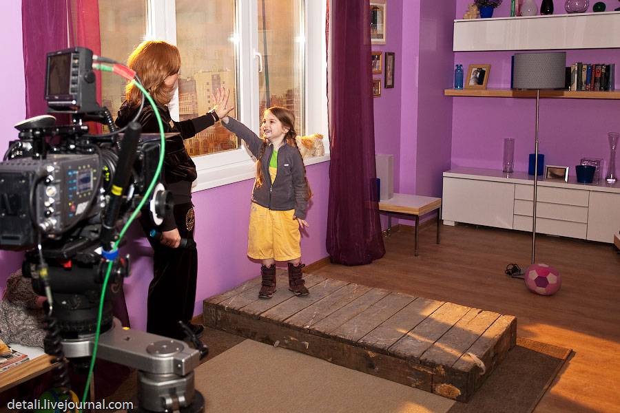 Все это организаторы приносят с собой. Ребят веселят необычные съемки (кадры потом прокручиваются в обратном направлении).