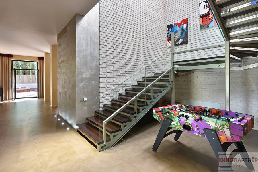 Современный дом дизайнера. Находится в 32 км. от Москвы по Минскому шоссе. Элитный коттедж в стиле Хай-тек площадью 350 кв. м. К нему прилагаются гостевой дом и 25 соток земли. Внутренняя отделка идеальна: нет ничего лишнего, каждый элемент выверен и полностью соответствует занимаемому месту. Вечером и ночью площадка вокруг дома наполняется мягким сиянием подсветки.
