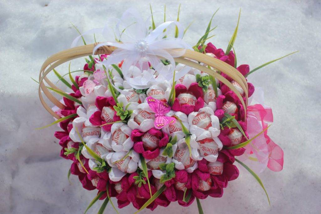 - Изделие должно выглядеть необычно или эффектно. Или украшаем его с помощью красивого декора, или делаем упор на размер. Иногда огромная корзина с леденцами принесет больше радости, чем маленькая коробочка с киндерами. А иногда маленький необычный презент будет интереснее, чем 10 килограммов конфет.