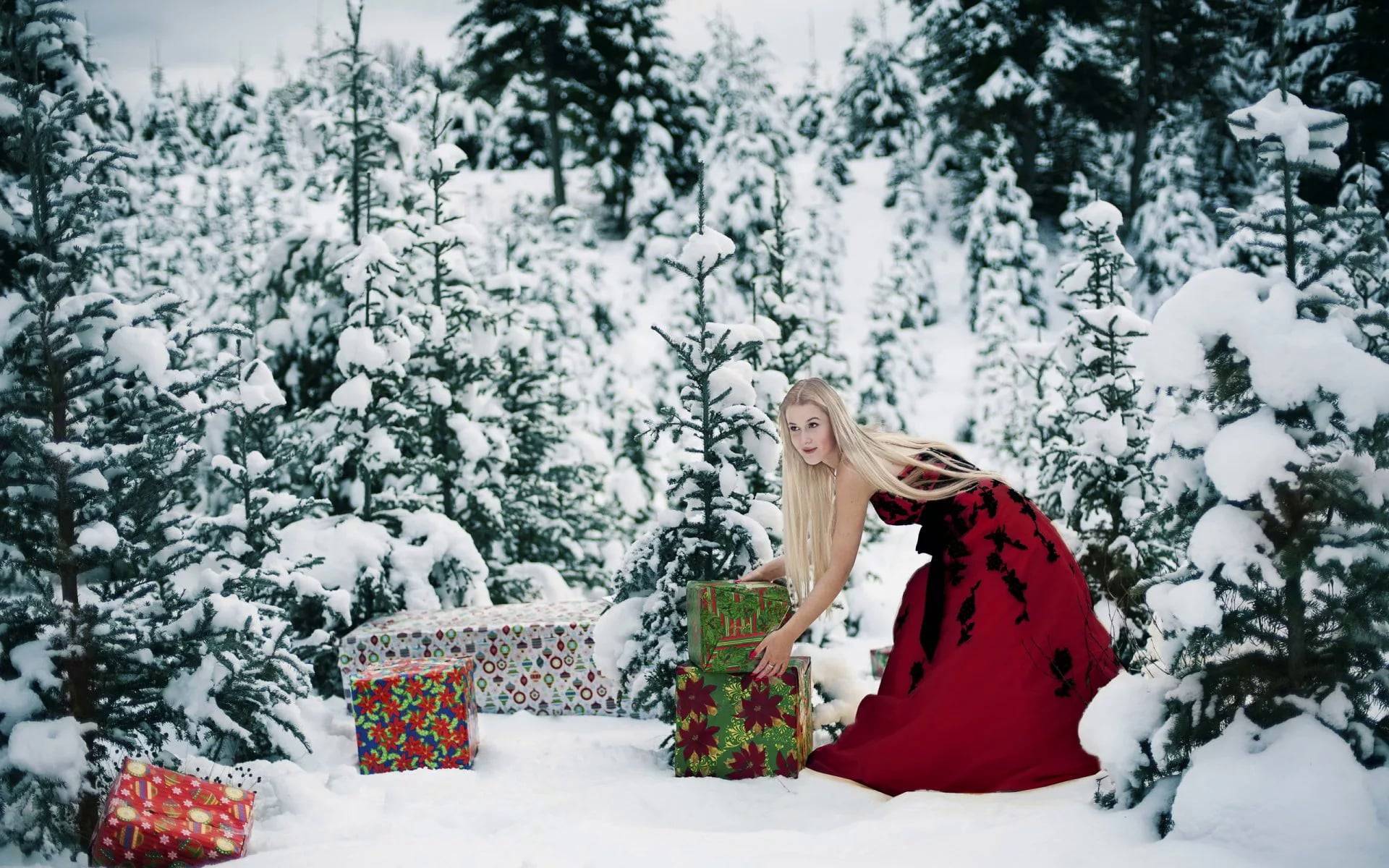 Зимняя свадьба 2021 года может быть оформлена в новогоднем стиле. Тогда для фотозоны выбирается подходящая тематика. Это может быть большая, нарядная елка, украшенная оригинальными игрушками. Разместиться для съемок можно на покрывале под деревом. Здесь же располагаются яркие подарочные коробки, игрушки и новогодние украшения. Такая домашняя обстановка понравится всем гостям.