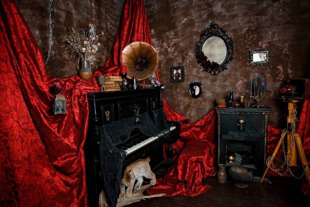 А, используя мелкие хитрости можно фактически создать две разные фотозоны в одной. Самый простой вариант: при свете использовать белые свечи, а в темноте делать фото с зажжёнными красными. Такая мелочь, полностью изменит внешний вид декораций. А если сюда еще добавить разный макияж и костюмы — успех гарантирован!