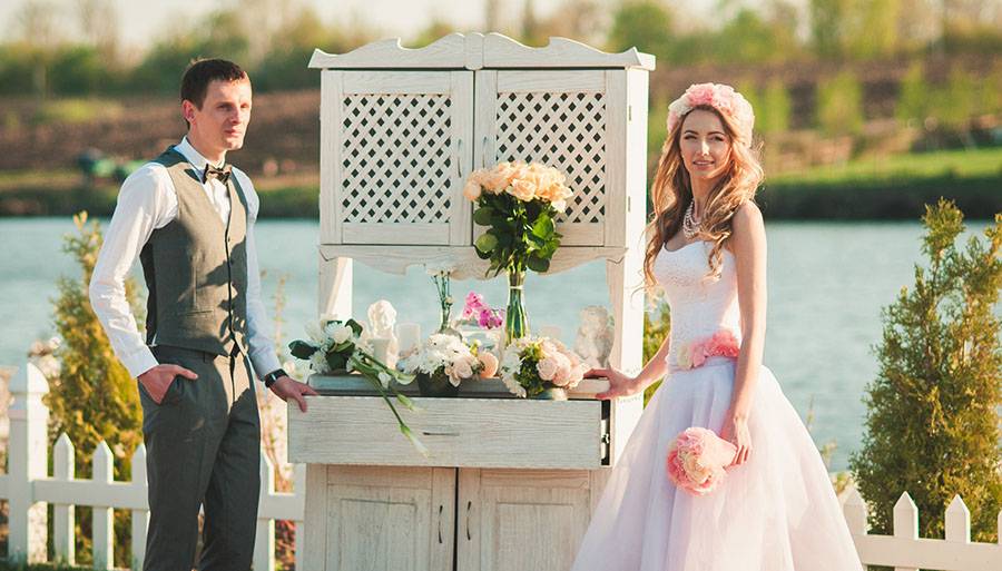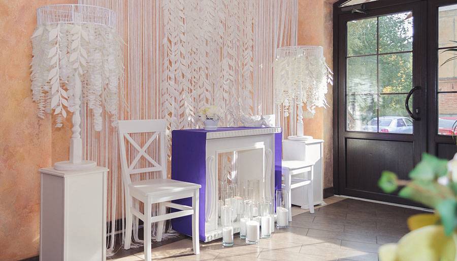 Для начала жениху и невесте необходимо определиться с местом празднования свадьбы, а затем подобрать в нем подходящий участок для фотозоны. От конкретного помещения или открытого пространства будет зависеть концепция декора, передаваемый сюжет и используемые материалы.