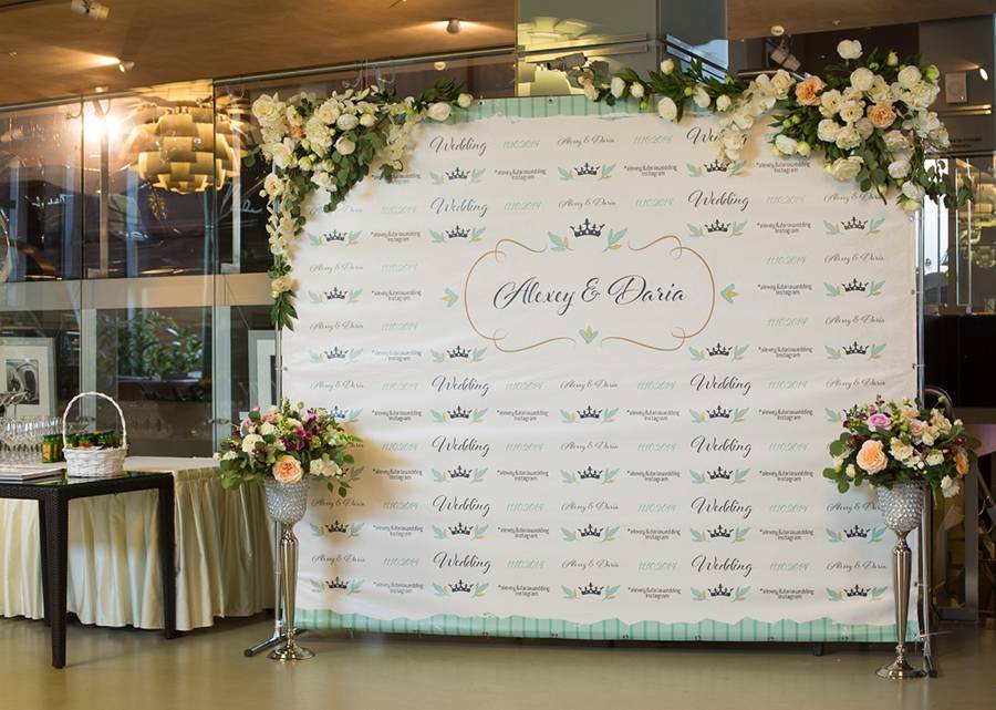 В типографии или агентстве по организацию праздников можно заказать изготовление фона с индивидуальным оформлением. Это могут быть совместные фотографии жениха и невесты или универсальный свадебный сюжет.