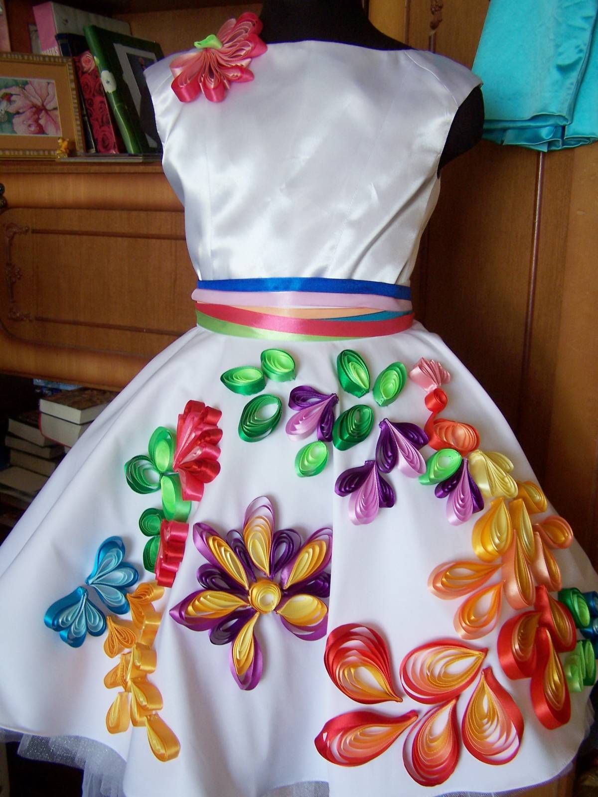 Первое, что всем приходит в голову это стразы. Вместе с ними можно использовать и камни, и бусы с бисером. Все эти разноцветные сверкающие украшения обязательно добавят платью нарядности и изюминки.