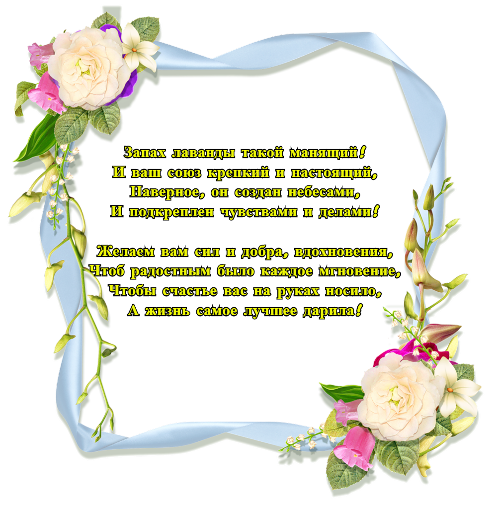 Вы примите наши поздравленья, Пусть вам улыбается судьба И пускай счастливые мгновенья Будут живы в памяти всегда!