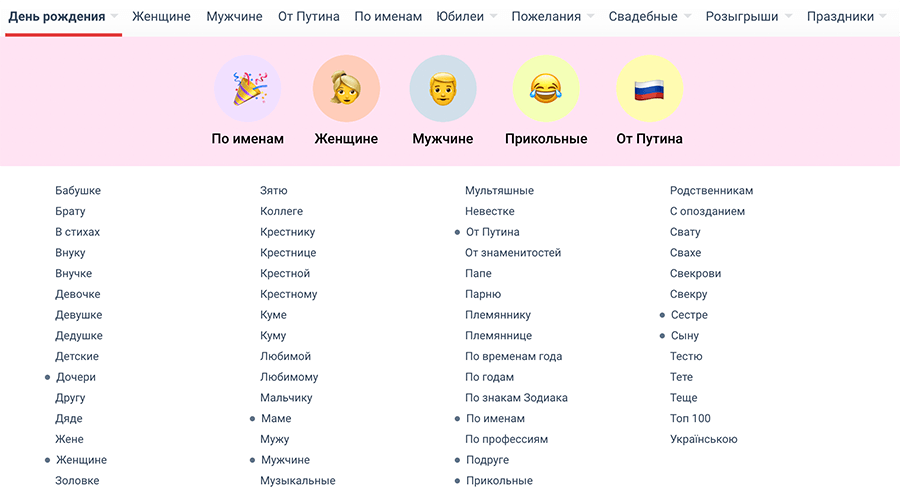 3. Поздравления с Днем Рождения: огромный выбор песен с Днем Рождения, юбилеями, а также стихов, приколов и просто интересных текстовых поздравлений
