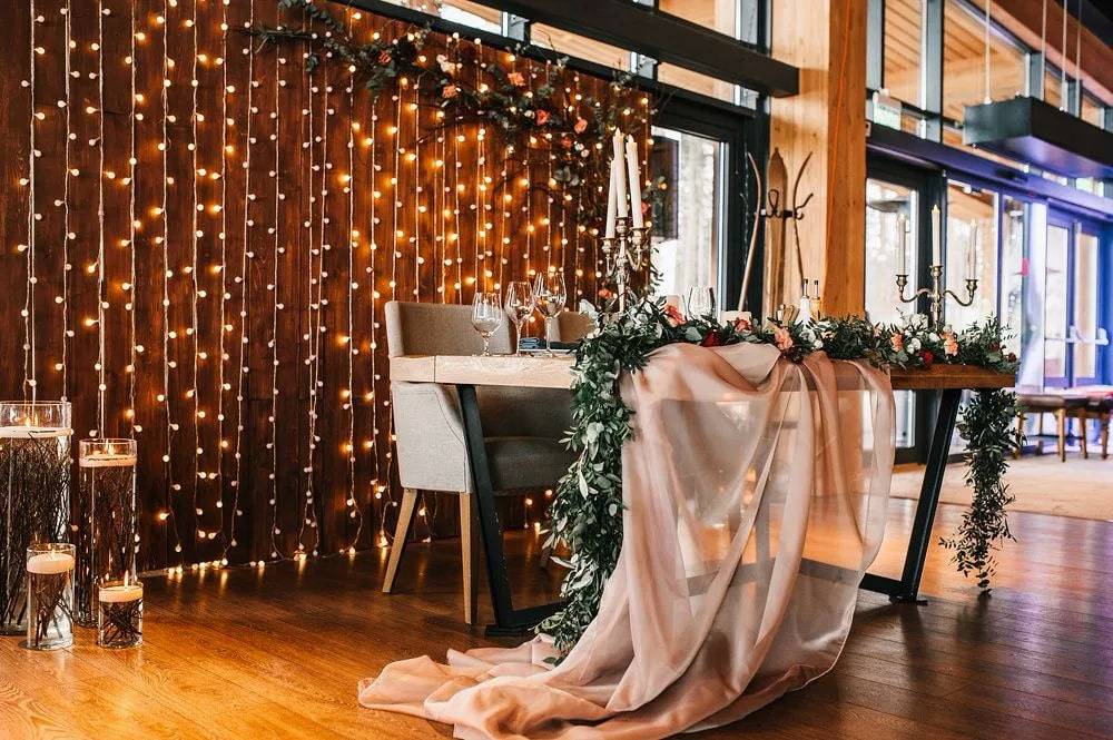 В случае, если свадьба проходит в банкетном зале, обговорите с администрацией заранее свою задумку. Возможно, что предыдущие гости их заведения уже делали подобную фото-точку и у них есть детали для Вашей фотозоны.