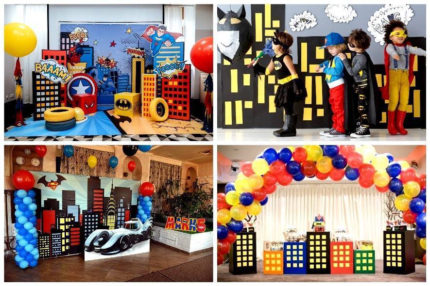 Тематическое оформление в стиле супергероев не ударит по бюджету, но потребует кропотливости. Многое из атрибутов легко сделать своими руками. Что-то можно собрать по друзьям или докупить в магазинах для детей. Одноразовую тематическую посуду и декор с эмблемами супергероев продают в отделах товаров для вечеринок.