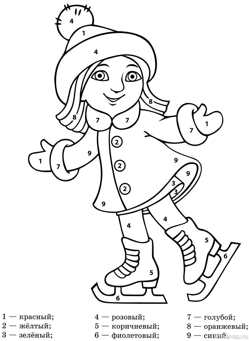 Раскрась рисунок, используя условные обозначения внизу страницы.