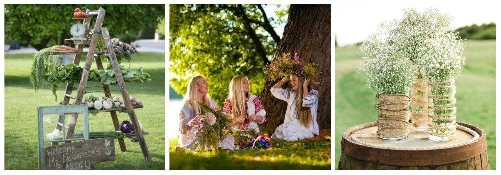 Цветовая гамма костюмов должна быть очень нежная, состоящая из натуральных оттенков и материалов. Например, идеально подойдет льняной дресс-код или бохо-шик. В меню договоритесь использовать только овощи и фрукты. Желательно, чтобы в вашей компании был хотя бы один вегетарианец или просто любитель правильного питания, который бы подкорректировал выбор продуктов и их сочетаний.