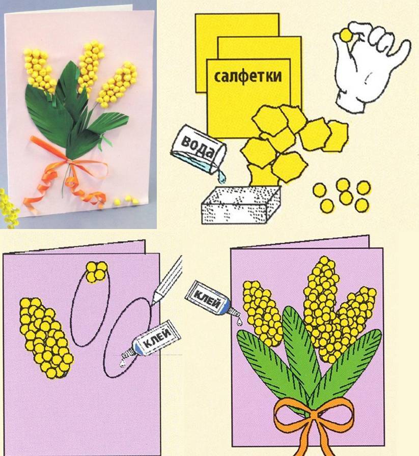 Детская поделка своими руками «Цветы» на 8 Марта из салфеток, видеурок с инструкцией