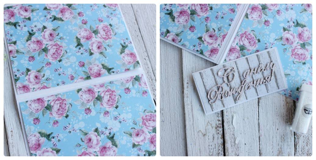 Снаружи так же декорируем открытку нарядным цветочным принтом.