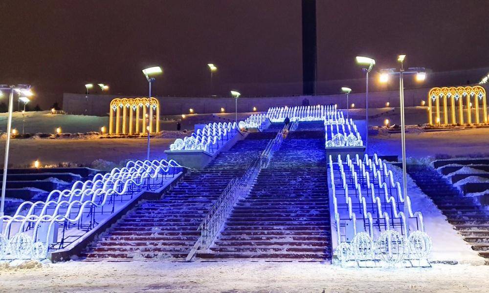 - Самарская набережная. Главная прогулочная локация города, куда приходят за красивыми видами и прекрасными впечатлениями. На новогодние праздники пятикилометровую набережную украшают. В процессе прогулки можно насладиться свето-музыкальным фонтаном, эффектными декорациями, арт-объектами. Парк с аттракционами не позволит заскучать.