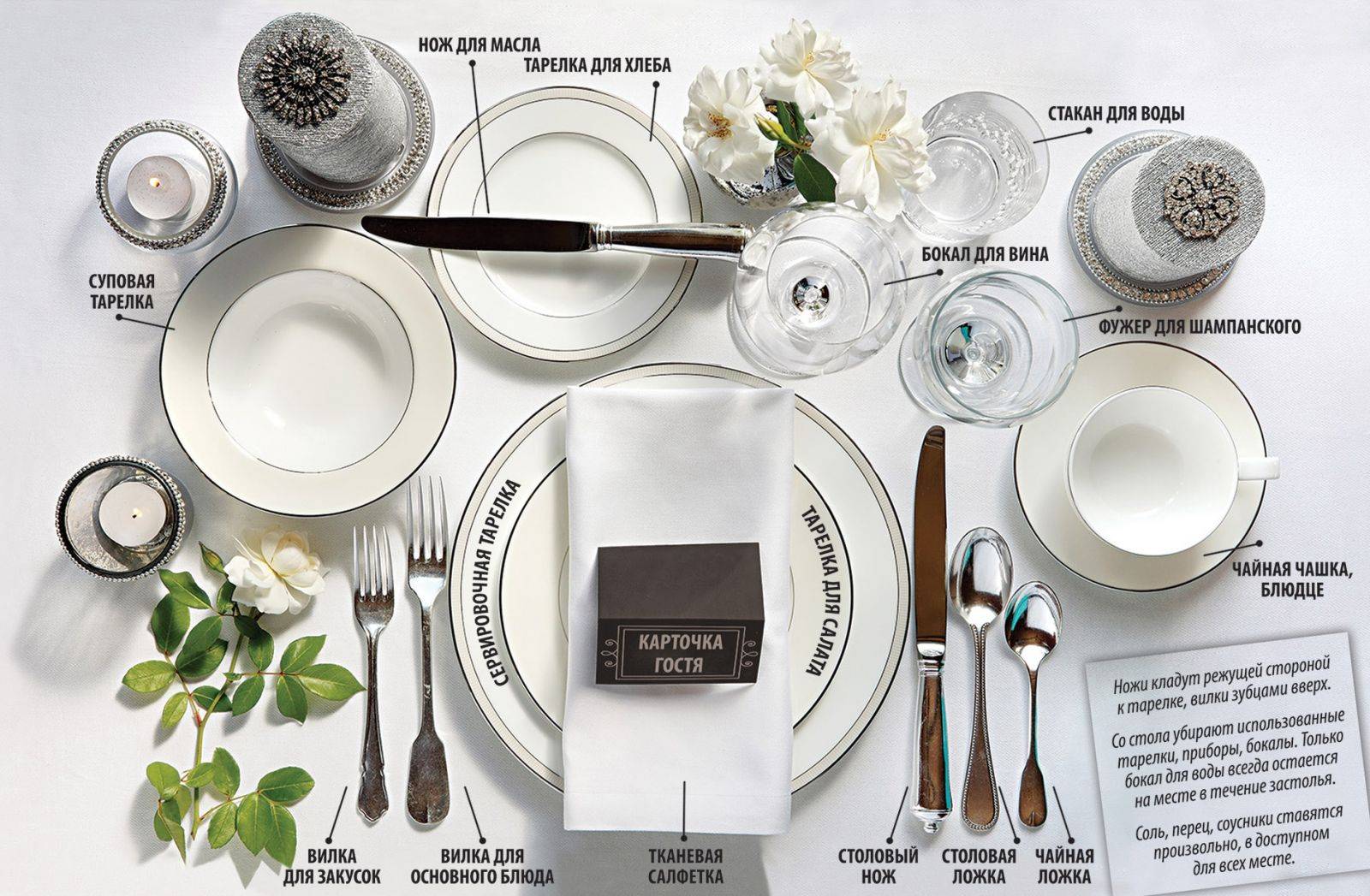 Не теряйтесь, если посуды на столе больше, чем вы ожидали увидеть — для всего есть свое предназначение, и если вы сомневаетесь в том, какую вилку или ложку следует взять, то всегда можно посмотреть, как эту задачу решат остальные гости.