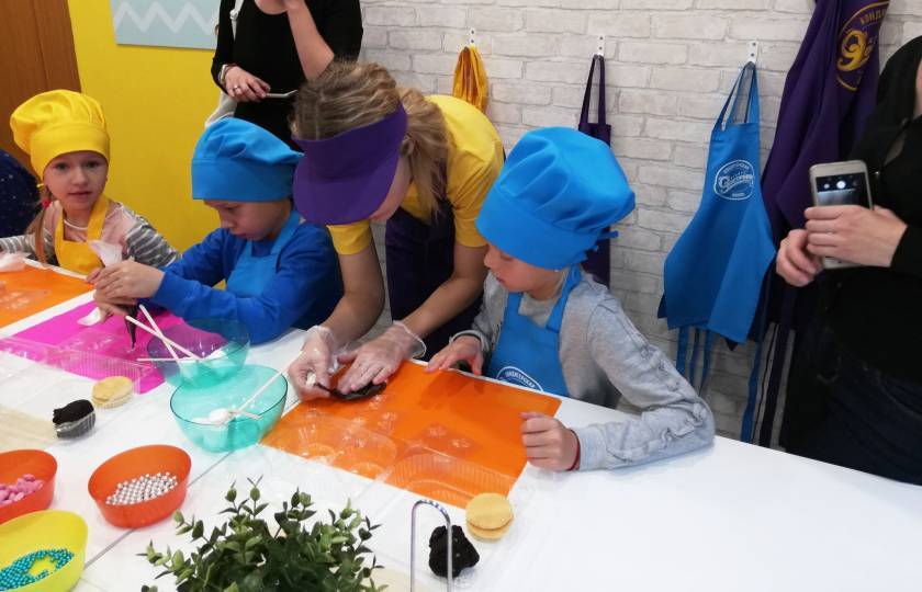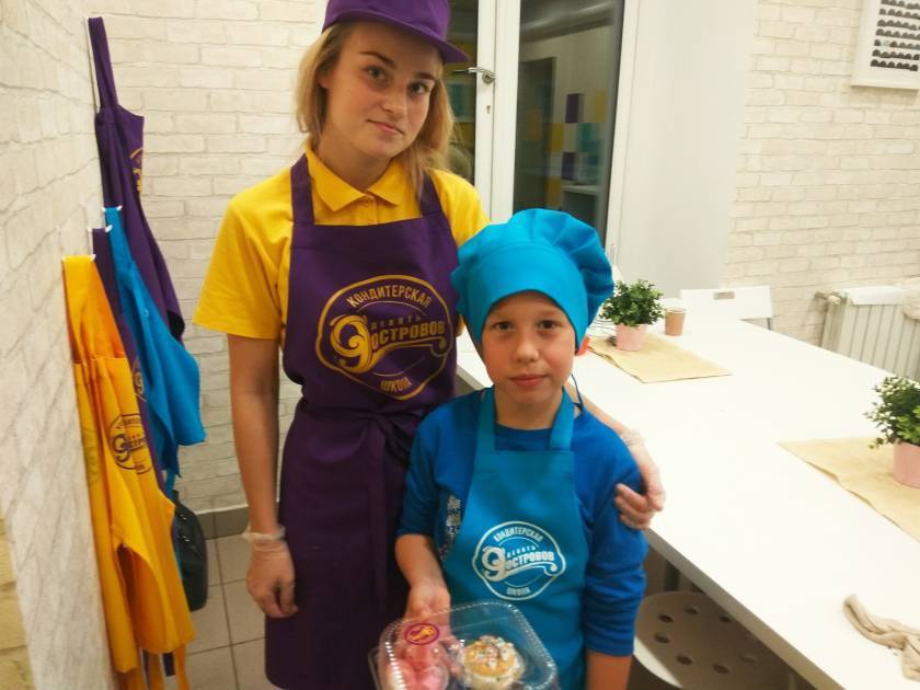 “Там для наших юных кондитеров преподаватель Эля сделала заготовки и разложила их на кондитерский коврик. Встретила нас дружелюбно, повела Сашу мыть руки, а затем предложила выбрать фартук и колпак, потом присесть на место. Такой подход был к каждому ребёнку.”