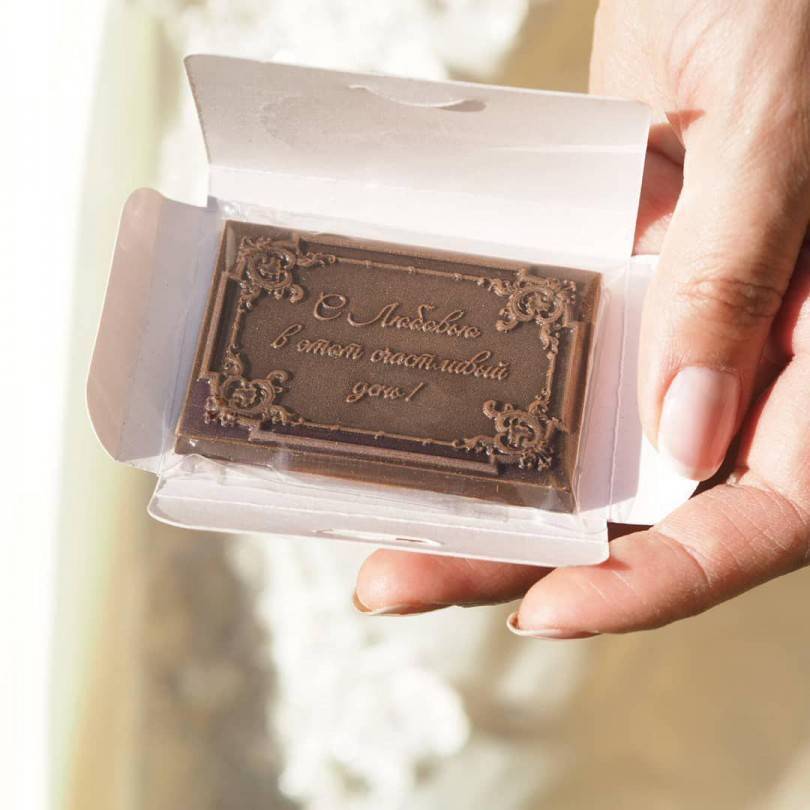 Если не хочется долго думать над воплощением презента, купите в подарок шоколад. Маленькие сладкие подарки всегда в тему! А если избегаете банальностей, закажите для гостей авторскую упаковку, отпечатанную в типографии.