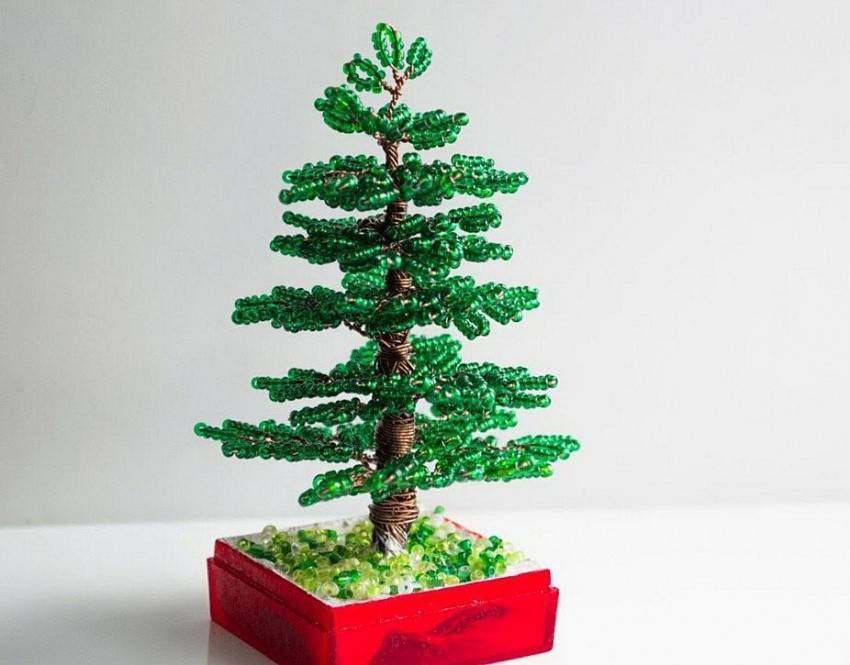 По желанию, в разных местах можно будет добавить другие оттенки цветов или бусины. А на верхушку можно закрепить звезду или другое украшение.
