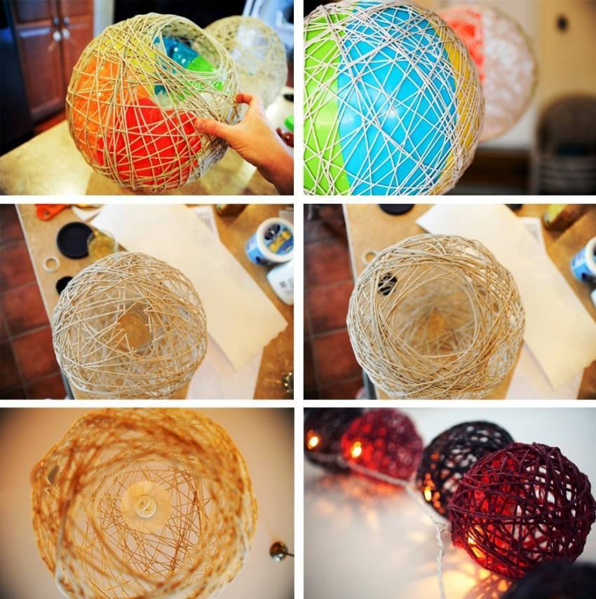 - Когда нитки высохнут, прокалывают шары и достают. Пропорция между разными заготовками