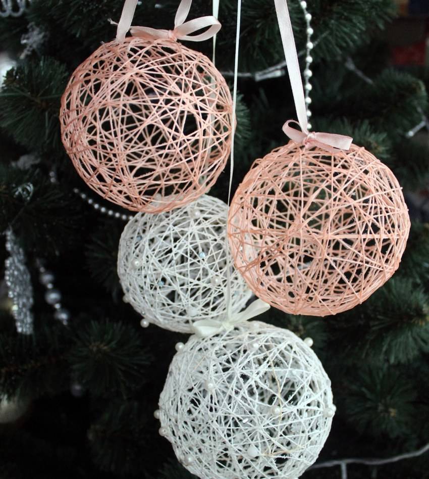 Еще одним способом изготовления поделки из елочных шаров является использование ниток. Такая техника на сегодняшний день является достаточно модной, набирает все большей популярности.