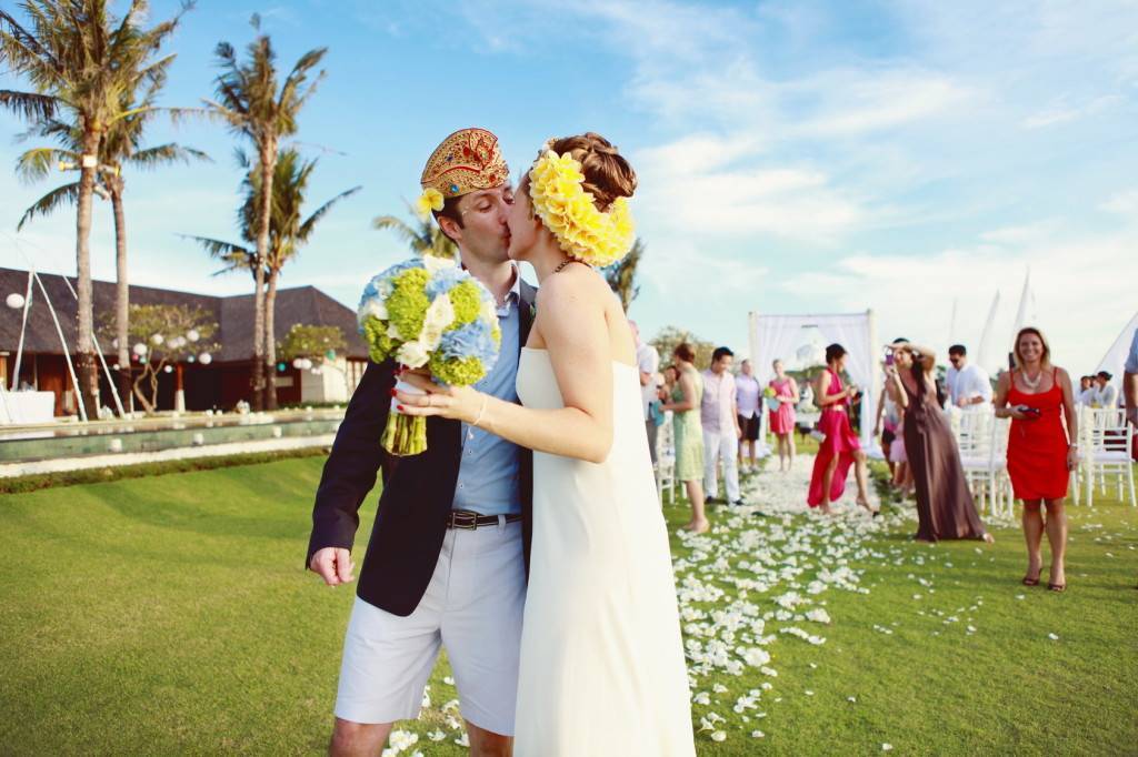 Бали. Остров Бали славится своей красотой. Не зря молодожены стремятся провести романтическую церемонию именно здесь. Золотистые пляжи, цветущие растения, прозрачная голубая вода сделают вашу свадьбу уникальной. Здесь свадебный бизнес уже отработан, вам почти не придется заниматься свадебными хлопотами. За отдельную сумму вы получите все, что нужно: ужин, церемонию бракосочетания, торт, фотографа и т.д. Если вы любители экзотики, Бали для вас. Здесь можно жениться хоть на слонах, хоть под водой.