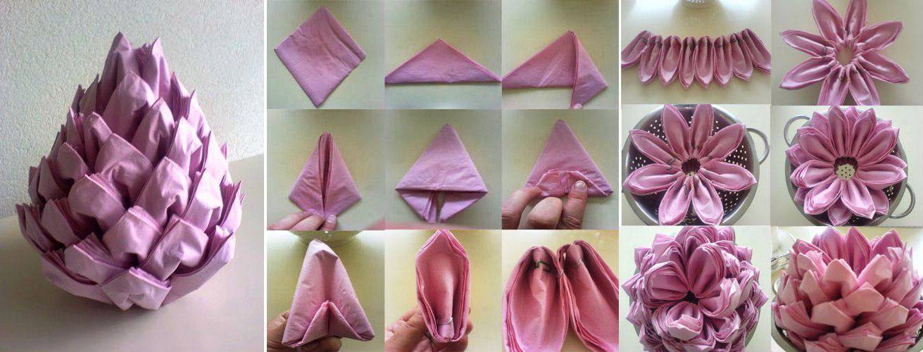 Необычный и простой способ сервировки праздничного стола. Учитывая разнообразие дизайнов и цветов бумажных салфеток, такая шишка может стать произведением искусства.