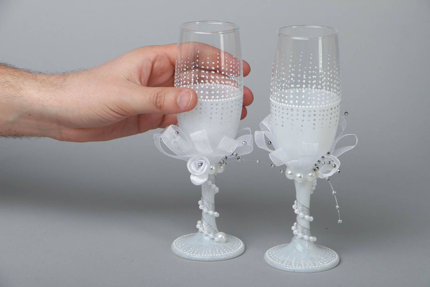Расписанные с помощью витражной краски бокалы можно дополнить декоративными цветами, лентами, бусинами или стразами.