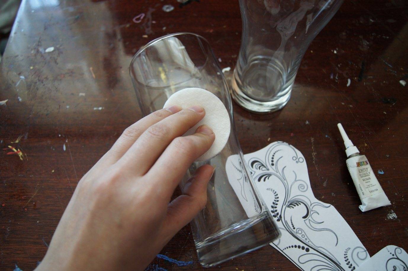 1. Очистите поверхность бокалов салфеткой со спиртом;