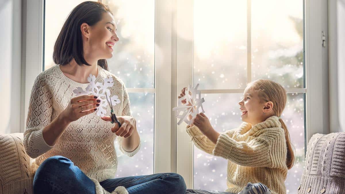 Сейчас в магазинах продаются любые украшения и декорации, которые только можно придумать. И всё же, очень рекомендуем вместе с ребёнком творить украшения для дома своими руками. Именно это создаёт у ребёнка ощущение и предвкушение праздника и надолго остаётся в памяти. Бумажные снежинки можно наклеивать на окна мыльной водой либо подвешивать за ниточки по всей квартире. Ваш дом сразу станет волшебным.